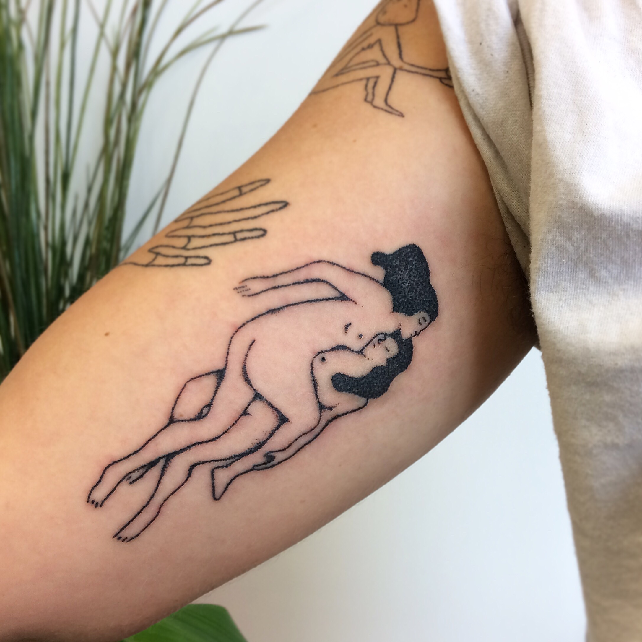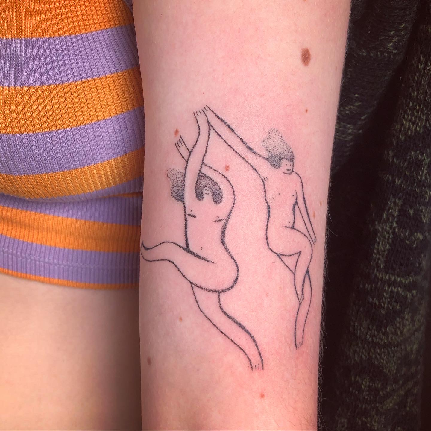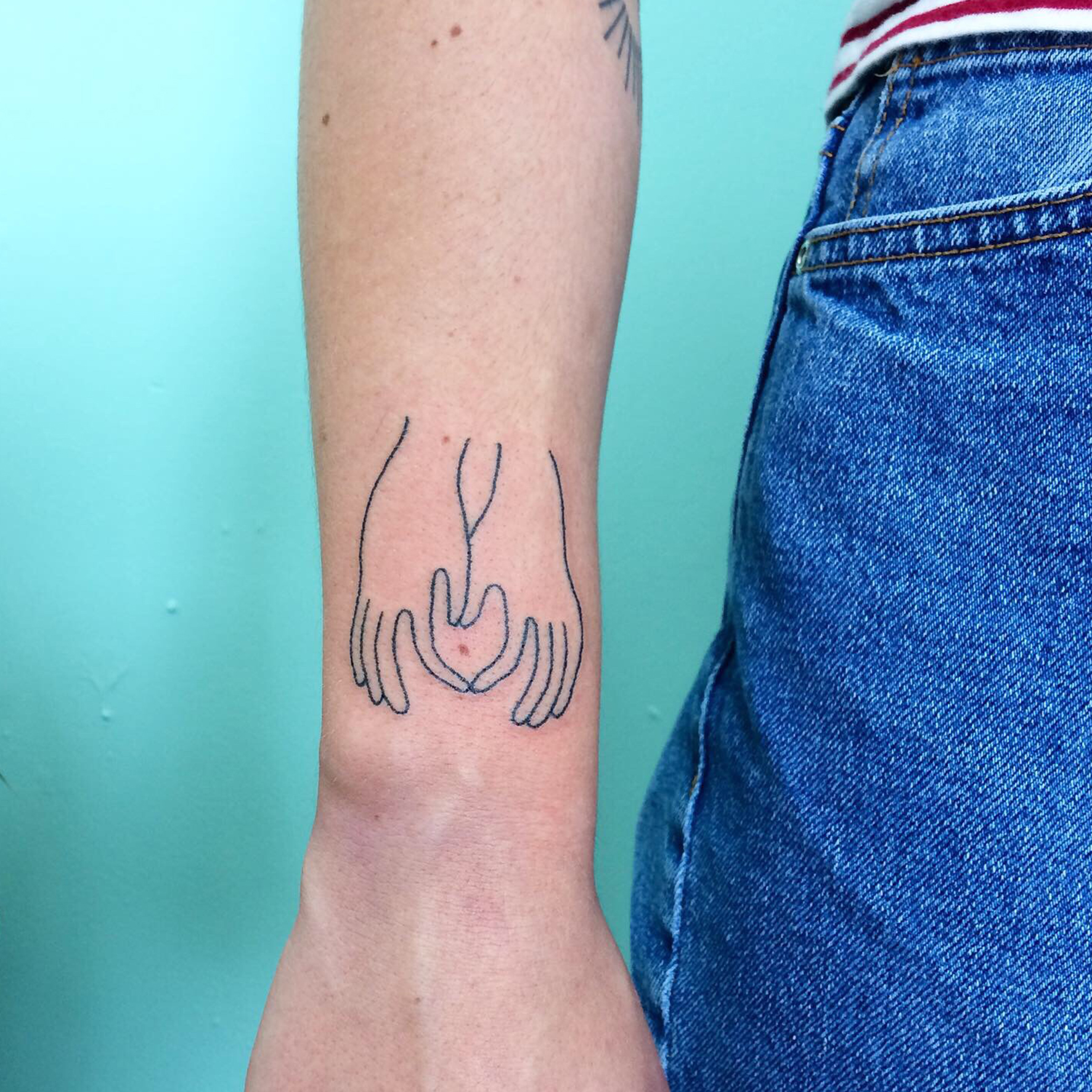 Je suis illustratrice, et je tatoue depuis 2017. Je réalise mes tatouages au handpoke (= sans machine), une technique douce à la cicatrisation rapide.